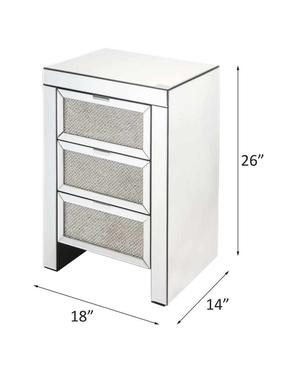 The Lavina occasional table brings glam styling to your home. The quality construction of this table features a combination of mirrored glass and composite wood, ensuring a design that endures. Three drawers with faux diamonds Inlay drawer fronts, It's just the right size for keeping small items, remotes, or reading materials at your fingertips.