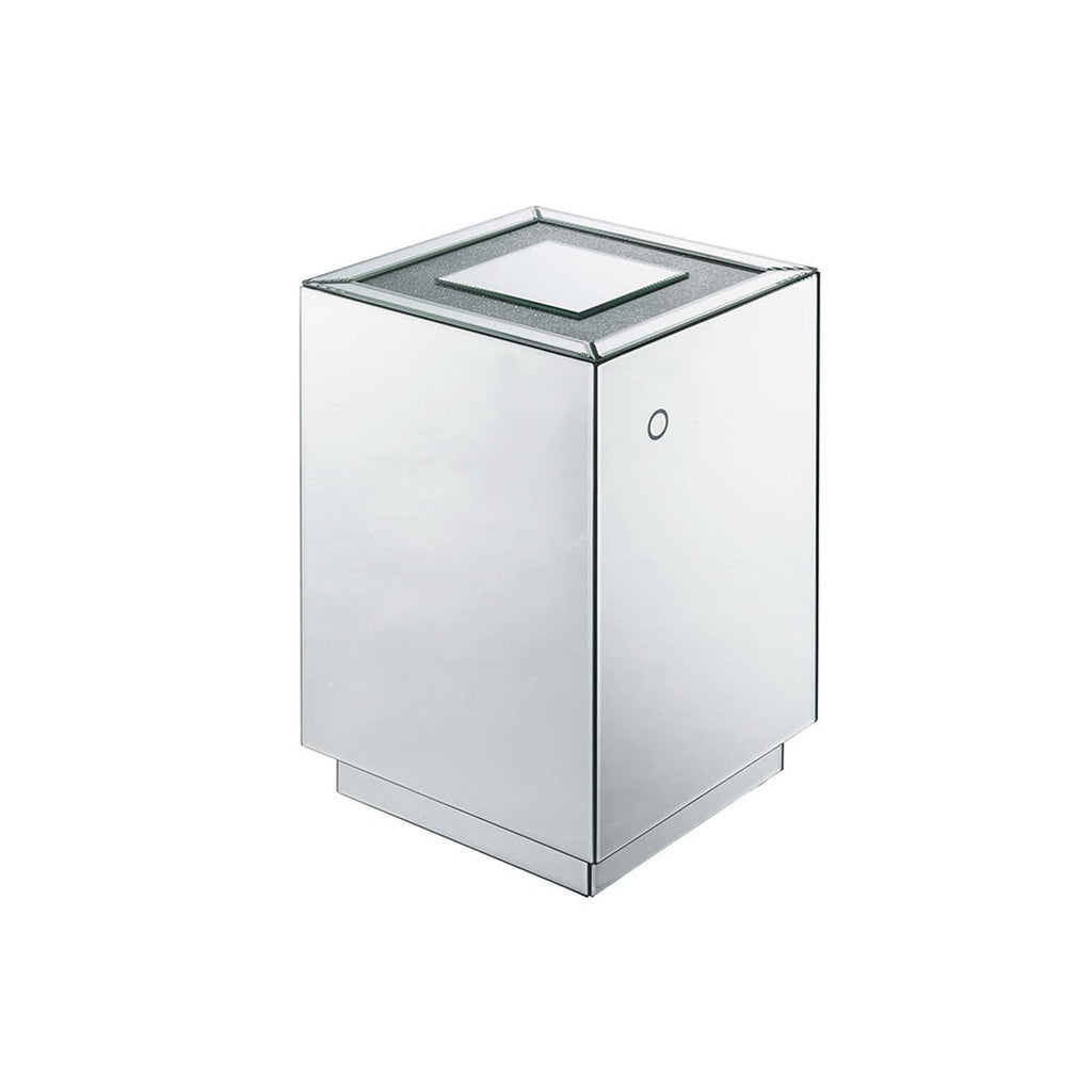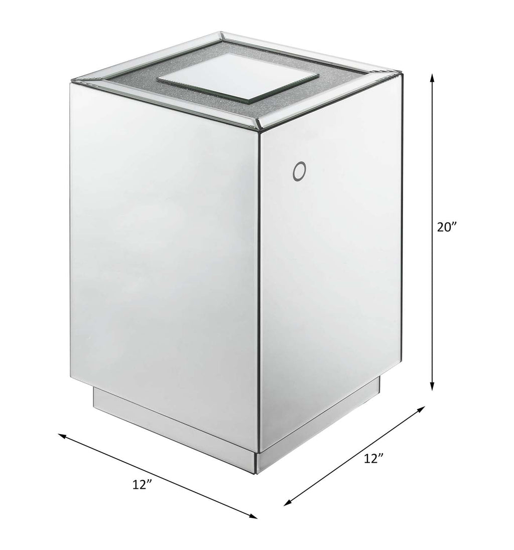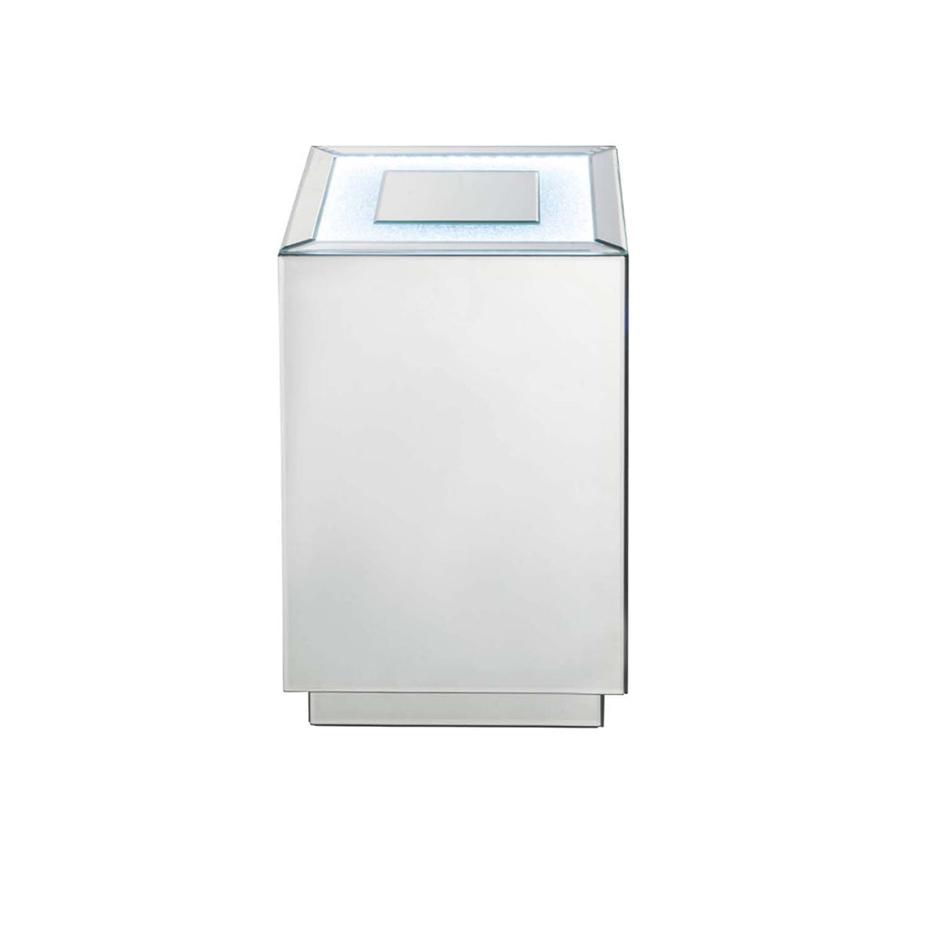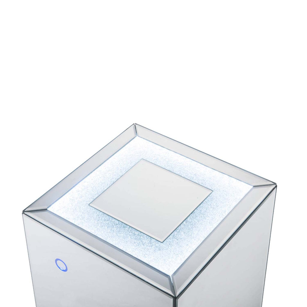 Style abound in the ample and functional design of the Nyoka side table. At night, you can turn on and off the LED Function. A glam display table that naturally attracts the eye with its beveled mirrored finish.