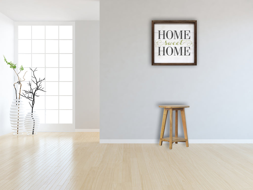 A very strong and compact little wooden stool, popular for use in kitchens, bars and cafes. It is sturdy yet light enough to move around easily. It has been constructed from 100% solid mango wood in an smooth oak-ish finish with Scandinavian style legs and one shelf. Every piece of furniture is individually handcrafted and includes swing care tickets explaining the cautions and aftercare instructions.