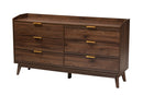 Rich wood tones are paired with retro silhouettes in the Linus storage set. Made in Malaysia, this lovely collection includes one dresser, one chest, and one nightstand. While offering superb storage capacity, each piece features slim metal drawer handles for a touch of modern refinement. The Linus set requires assembly and utilizes angled legs for excellent stability and support. Showcasing an iconic mid-century look, the Linus storage set is sure to transform any bedroom layout.