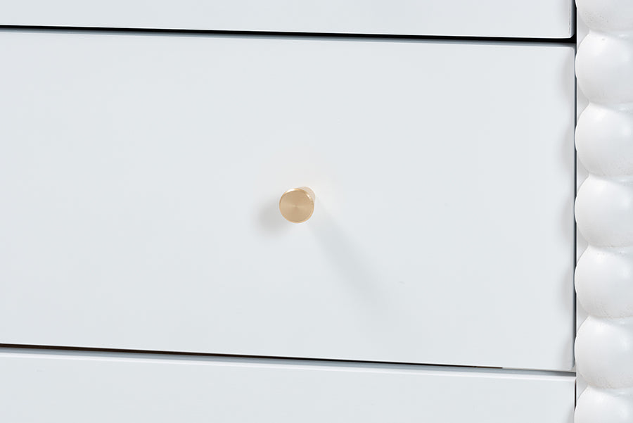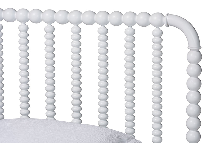 The vintage artistry of the exuberant Laverne bedroom set creates an environment of traditional flair. Made in Malaysia, this mid-century inspired set includes one bed, one dresser, one chest, and two nightstands crafted from sturdy wood. Turned bobbin embellishments envelop each piece for a captivating display rich with classic charm. The Laverne requires assembly and utilizes wood slats for mattress support, eliminating the need for a box spring. Tapered legs highlight the vibrant geometry of each piece, making the Laverne bedroom set a marvelous arrangement.