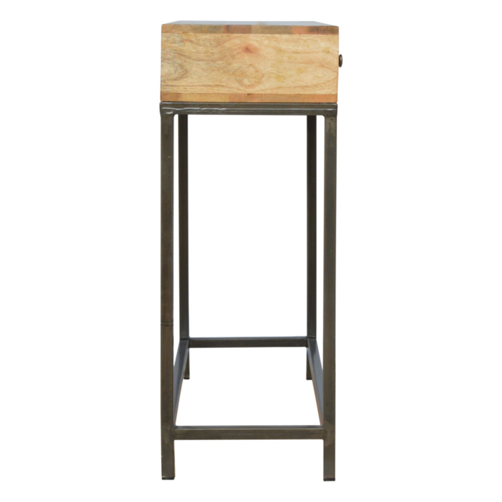 This 2 drawer console table is an excellent choice for adding extra surface and storage space to your hallway. The slimmer design makes this an ideal piece for tighter spaces such as your hallway. The top and drawers are constructed from 100% solid mango wood, and the base/legs is constructed from 100% metal Iron. Other features include straight legs, round shiny knob handles, smooth oak-ish finish on the wood and a pewter finish on the Iron.