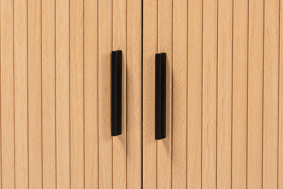 • Fluted Wood Exterior : Vertical slats adorn the doors with crisp geometric allure emblematic of robust style