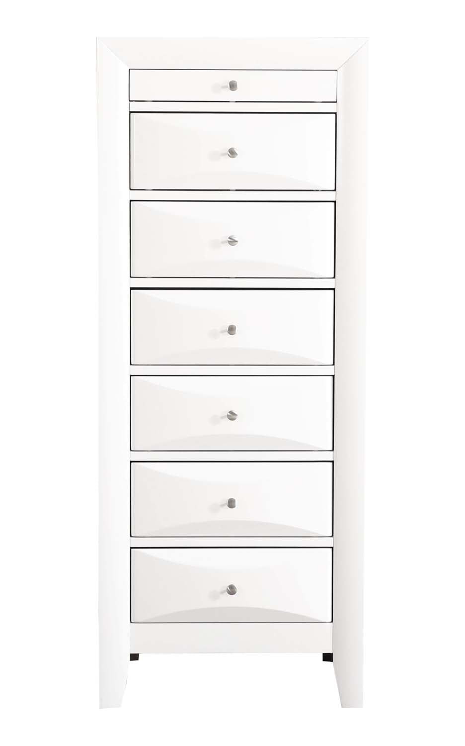Assembled Lingerie Chest is Finished in Real Wood Veneers over Manufactured and Solid Wood. Drawers Move on Center Supported Metal Guides and Are Dovetailed Front and Back. Corner Blocks are utilized to Support Drawer Bottoms. Choose from a Variety of Colors. Additonal Case Pieces are Available as well as Matching Beds