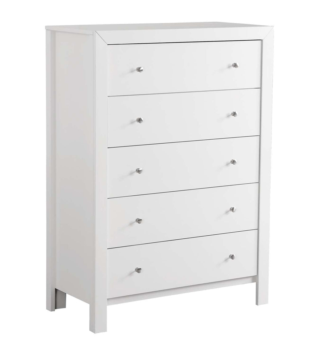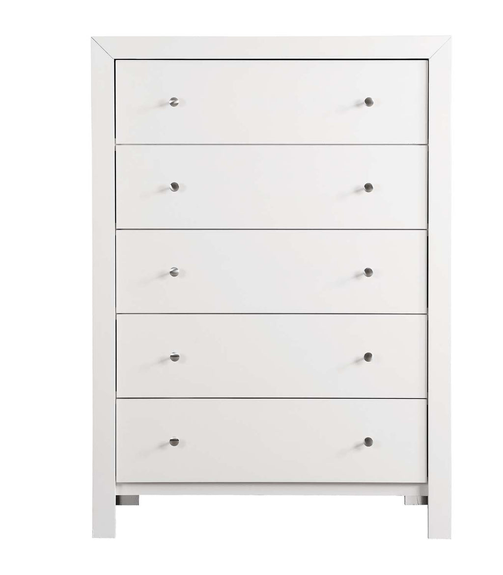 Assembled Bedroom Chest is Finished in Real Wood Veneers over Manufactured and Solid Wood. Drawers Move on Center Supported Metal Guides and Are Dovetailed Front and Back. Corner Blocks are utilized to Support Drawer Bottoms. Choose from a Variety of Colors. Additonal Case Pieces are Available as well as Matching Beds