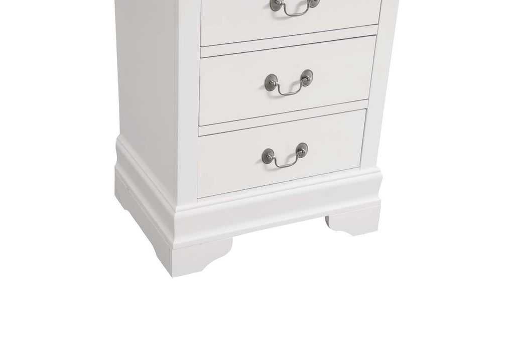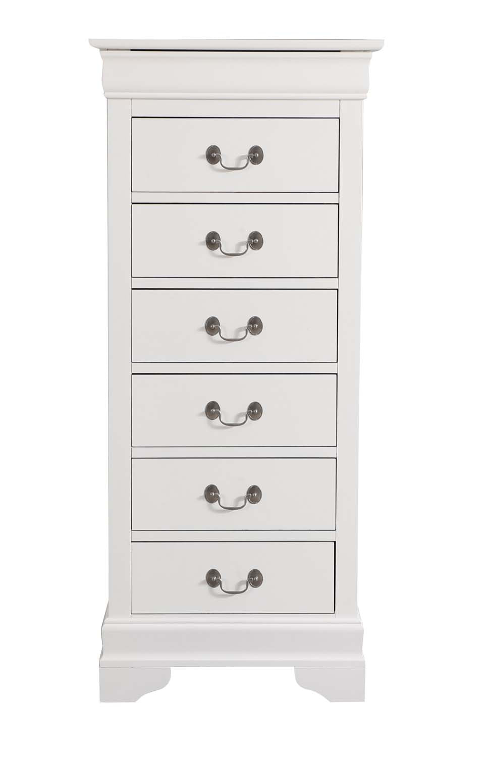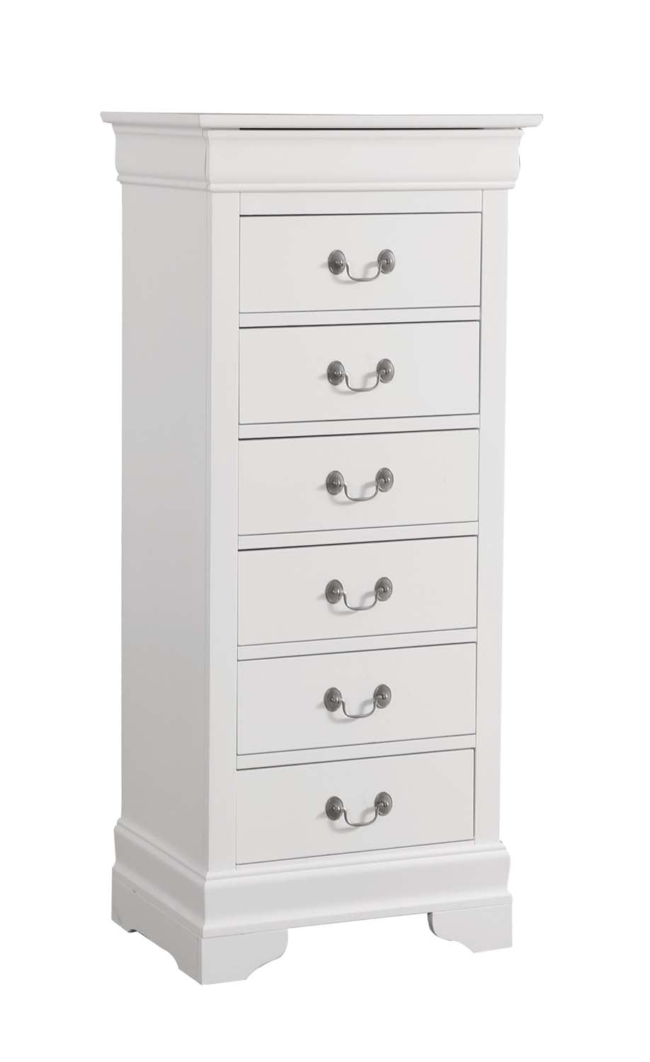 Assembled Lingerie Chest is Finished in Real Wood Veneers over Manufactured and Solid Wood. Drawers Move on Center Supported Metal Guides and Are Dovetailed Front and Back. Corner Blocks are utilized to Support Drawer Bottoms. Choose from a Variety of Colors. Additonal Case Pieces are Available as well as Matching Beds