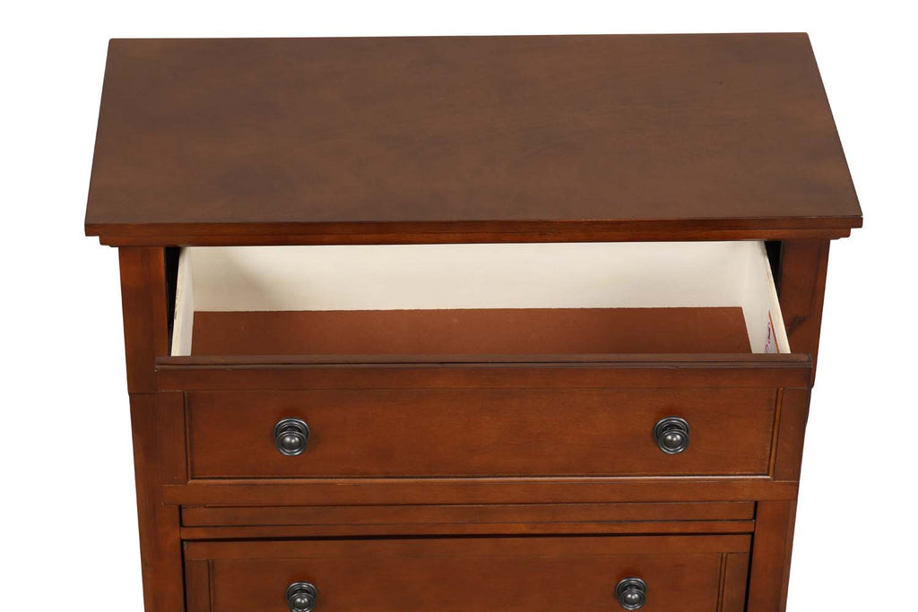 Assembled Bedroom Chest is Finished in Real Wood Veneers over Manufactured and Solid Wood. Drawers Move on Ball Bearing Full Extension Drawer Glides and Are Dovetailed Front and Back. Corner Blocks are utilized to Support Drawer Bottoms. Choose from a Variety of Colors. Additonal Case Pieces are Available as well as Matching Beds