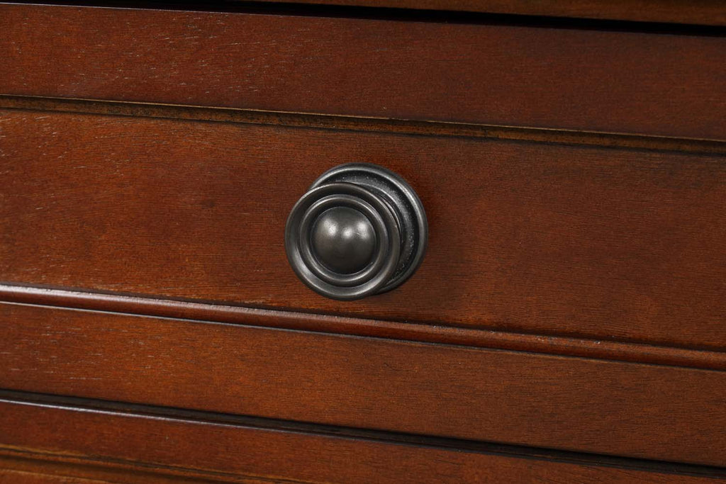 - Smooth drawer fronts with classic pull handles for easy opening and closing