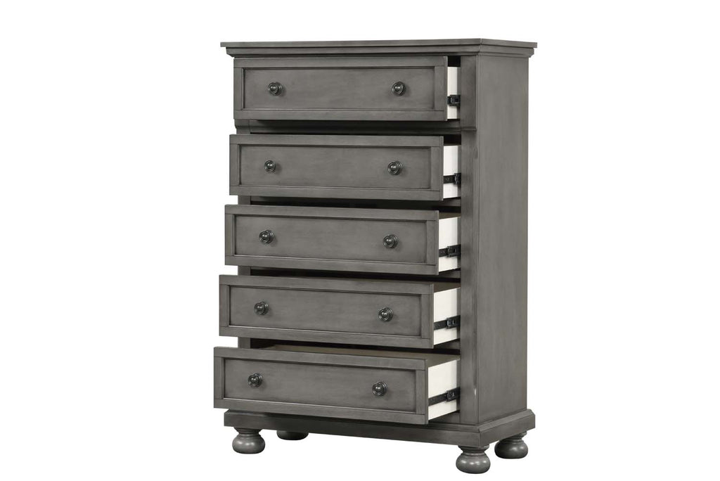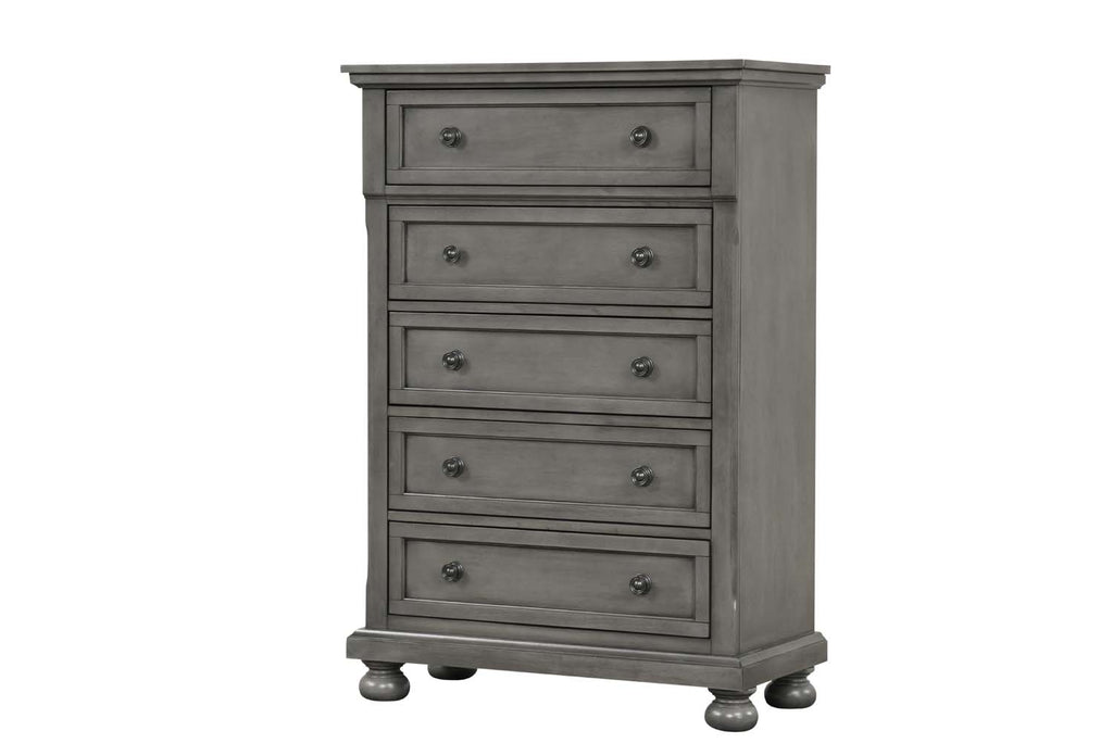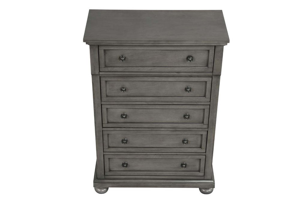 Assembled Bedroom Chest is Finished in Real Wood Veneers over Manufactured and Solid Wood. Drawers Move on Ball Bearing Full Extension Drawer Glides and Are Dovetailed Front and Back. Corner Blocks are utilized to Support Drawer Bottoms. Choose from a Variety of Colors. Additonal Case Pieces are Available as well as Matching Beds