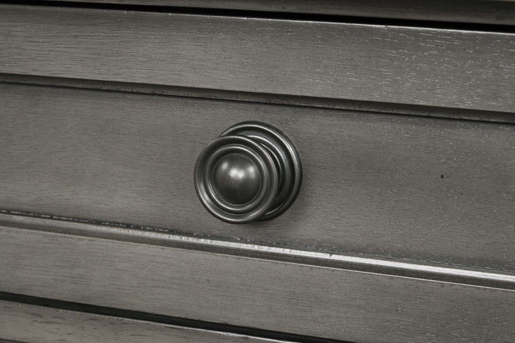- Smooth drawer fronts with classic pull handles for easy opening and closing