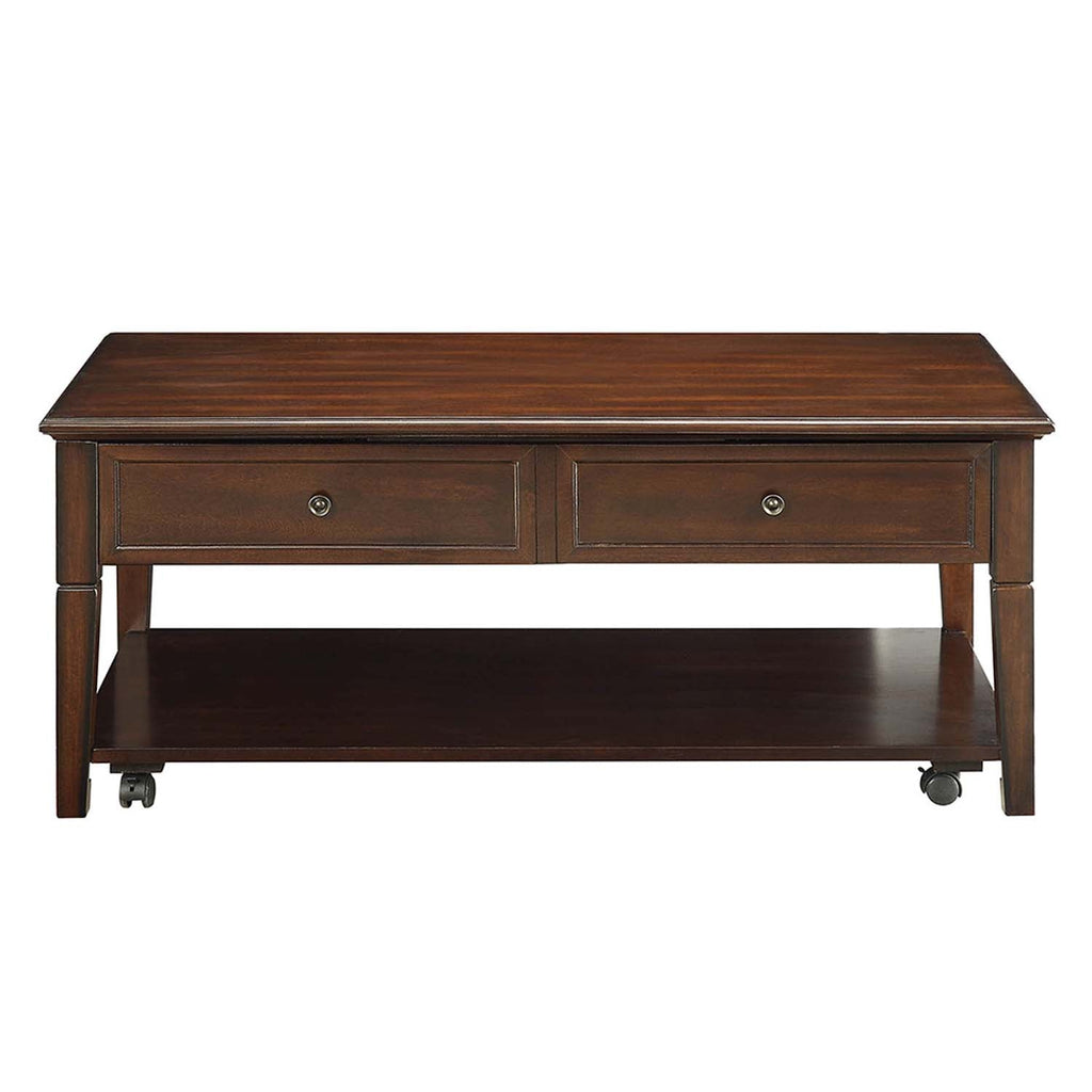 The Malachi Coffee Table offers a Transitional Style in a warm Walnut Finish. The Coffee Table Features a easy lift top with storage space, tapered legs complemented by a bottom display shelf.