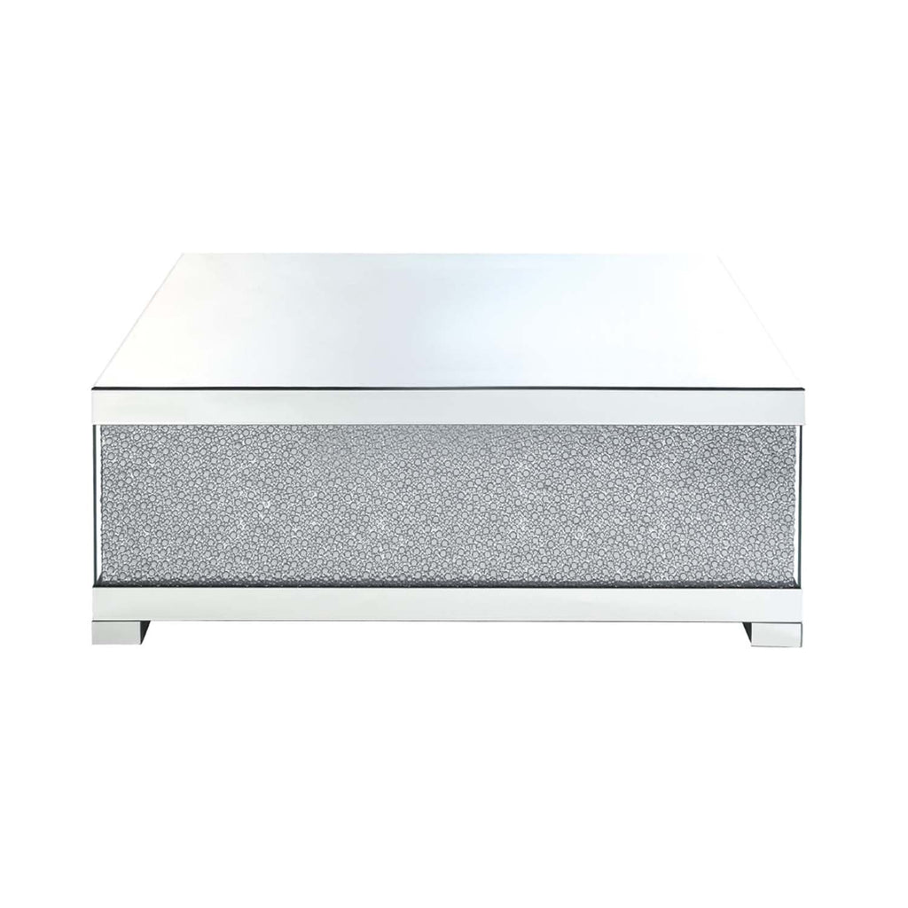 - Features: Mirrored Top, Base w/Faux Crystals & Clear Glass