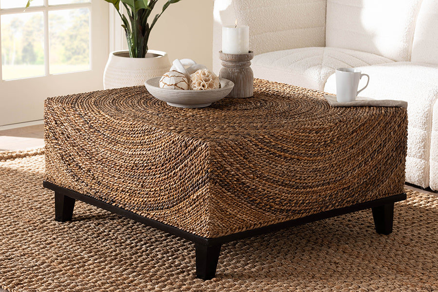 A quality of rustic ease permeates any setting anchored by the stunning Niko coffee table. Made in Indonesia, this bohemian piece is comprised of a solid wood base adorned with meticulously handwoven natural seagrass by skilled artisans. The captivating spiral design of the seagrass lends remarkable geometric allure while the spacious tabletop accommodates any occasion. The Niko requires assembly and utilizes tapered legs for excellent stability and support while creating a sleek silhouette. Imbued with rustic serenity, the Niko coffee table transforms any scene.