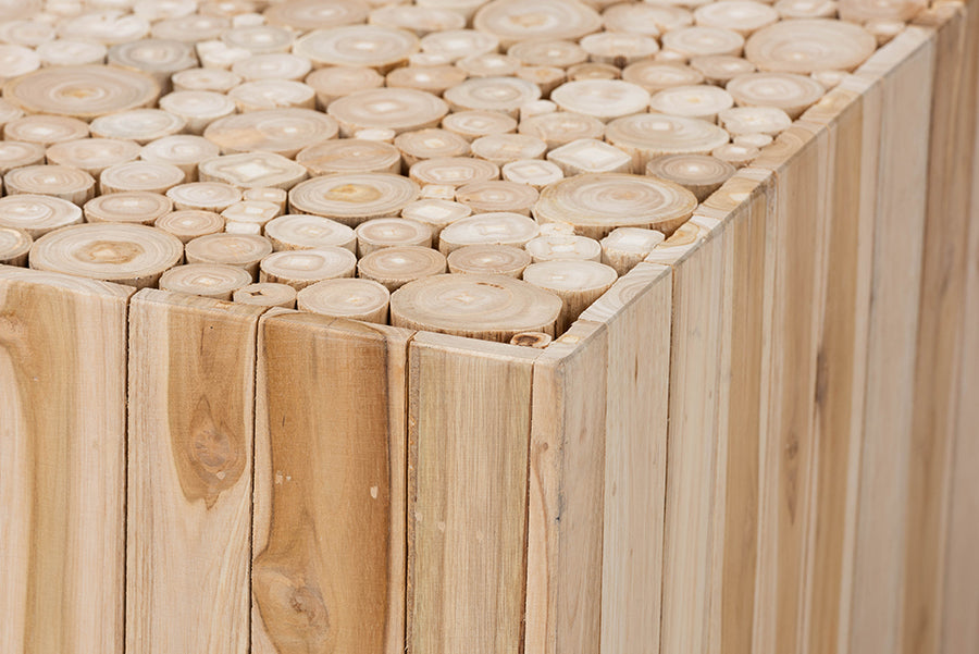 - Arranged with repurposed wood logs by skilled artisans, each piece is unique