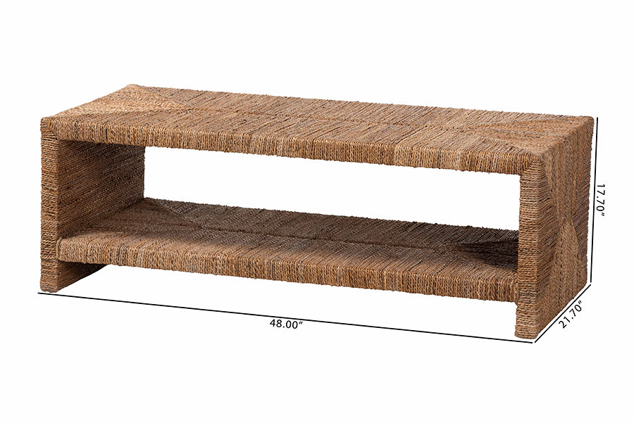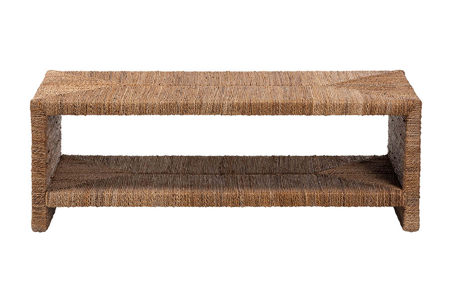 Carry a sense of calming ease with the lovely Ardelle coffee table. Made in Indonesia, this bohemian piece consists of a sturdy acacia wood frame wrapped with natural seagrass by skilled artisans. Its wide tabletop creates a perfect anchor point for a variety of settings while the lower shelf offers convenient space to organize decor. The Ardelle will arrive fully assembled and utilizes straight legs with crisp lines and angles to blend well with any existing layout. Lending a touch of rustic artistry, the Ardelle coffee table transforms any setting.