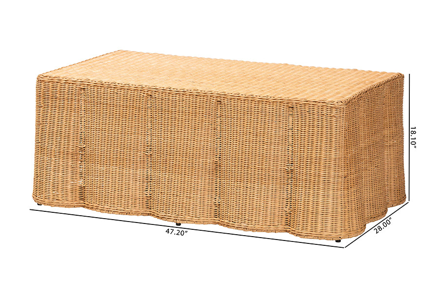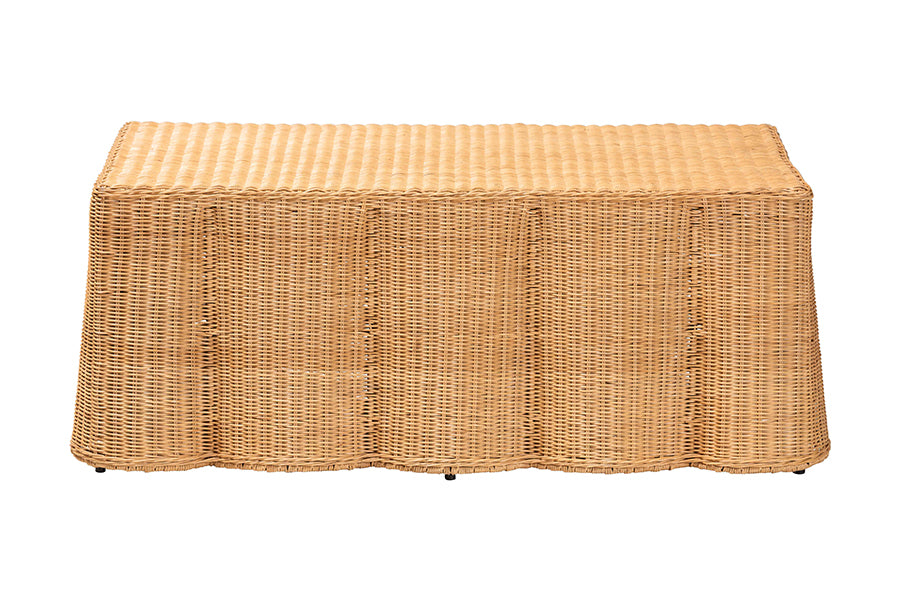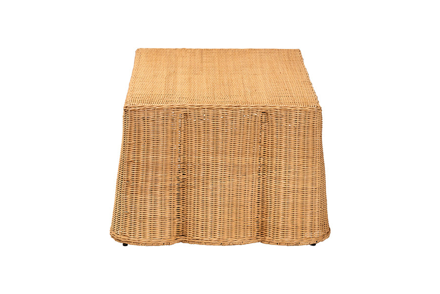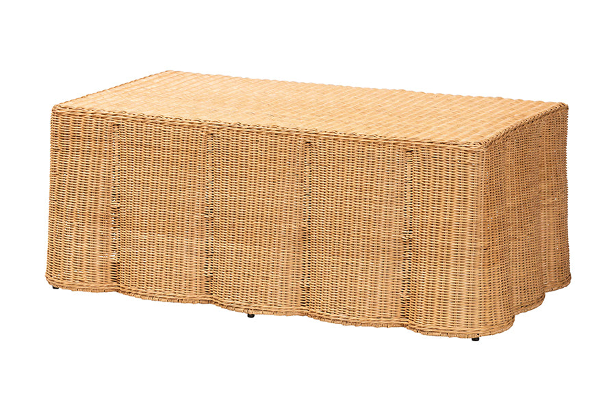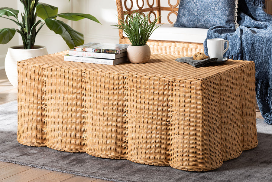 Claire Scalloped Rattan Coffee Table, Light Honey