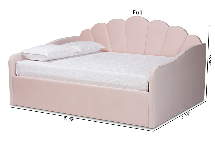 Rest and lounge with your cares aside in the glamorous yet sprightly design of the Laure daybed. Made in Malaysia, this stunning piece is comprised of a wood frame padded with soft foam and upholstered in sumptuous velvet fabric. Scalloped edges form a pleasant, seashell-inspired silhouette that refreshes the scenery of any bedroom layout. The Laure requires assembly and utilizes wood slats for mattress support, eliminating the need for a box spring. Gently sloping arms complete the look, making the Laure daybed a wonderful addition to any bedroom.