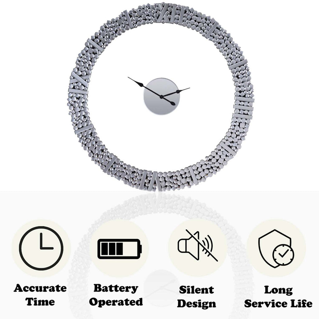Material: Clock, Mirror, Faux Crystals, Composite Wood