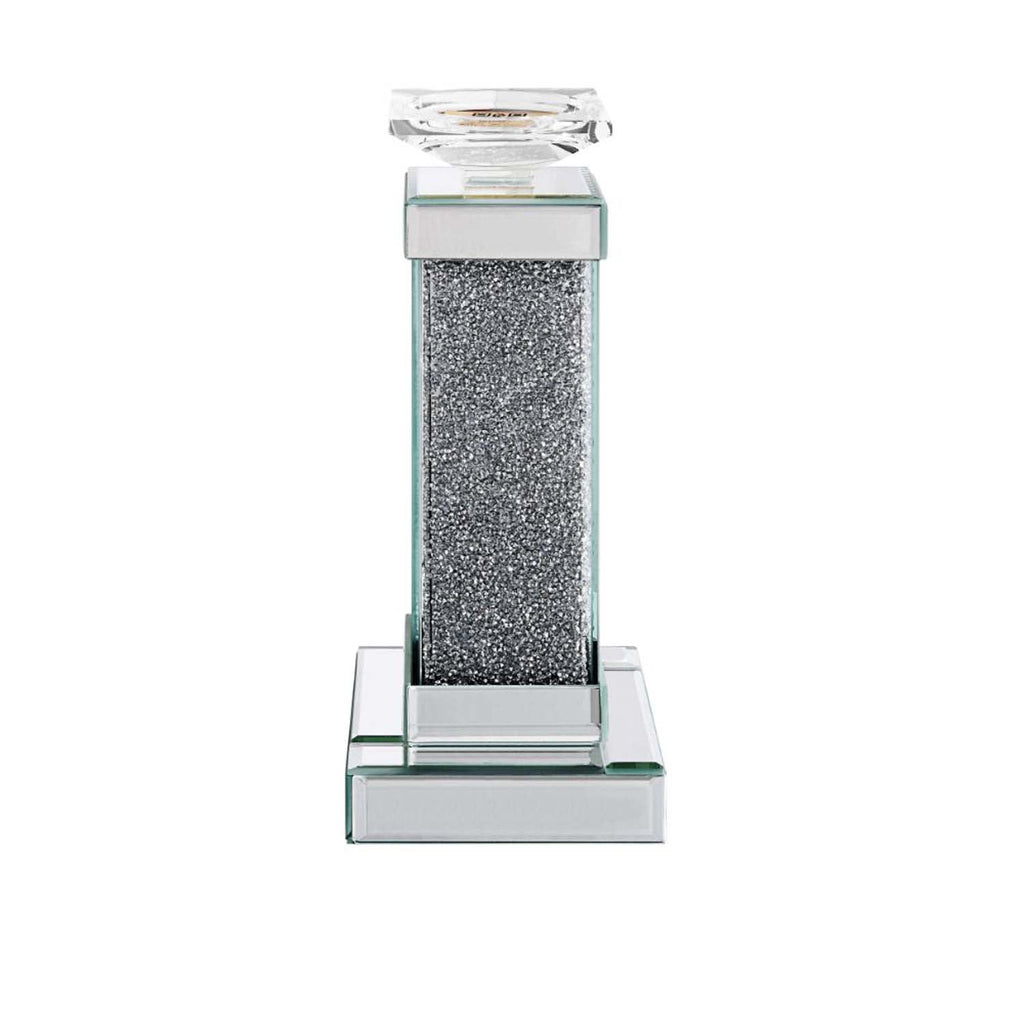The Rekha candle holder collection fills your home with soothing scents and the simulating look of natural light. It is crafted from manufactured wood and features a mirrored frame with beveled edges and acrylic inlay. Available in two different sizes, acquire this set for a warm, welcoming centerpiece.