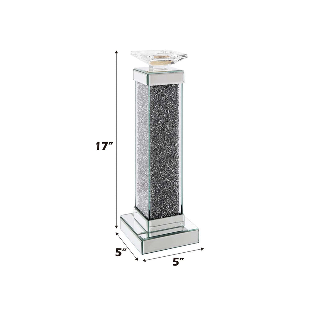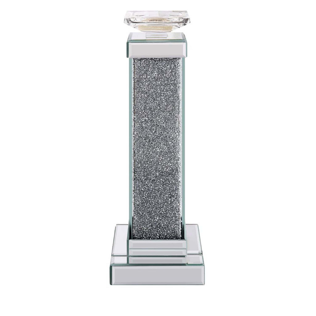 - Features: Beveled Mirrored Finish w/Faux Crystals Inlay, 4mm Clear Tempered Glass