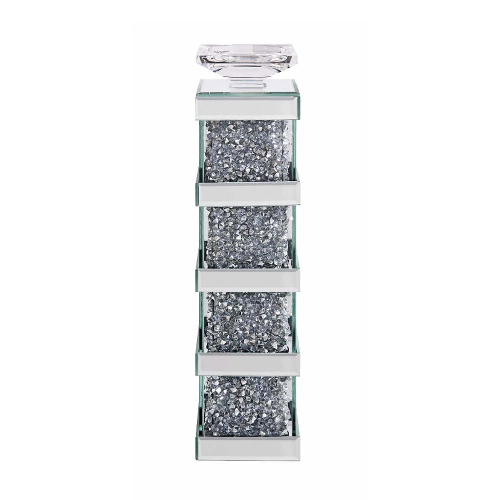 Cast a warm glow over any space in your home with this Noralie candleholder. More than stylish, this piece will bring sophistication to your home with its mirrors and faux gem inlay. This gleaming piece comes in two different sizes to choose the one that complements your decor.