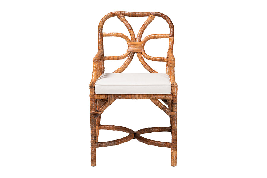 The graceful presence of the Jacy dining chair carries serenity in any occasion. Made in Indonesia, this bohemian piece is handcrafted from sustainably sourced natural rattan. The elegant openwork design of the frame presents a breezy and soothing presentation while scalloped arms encourage casual comfort. The Jacy will arrive fully assembled and is fitted with a removable seat cushion padded with plush foam and upholstered in soft fabric. Adeptly blending style and comfort, the Jacy dining chair adds tranquility to any setting.