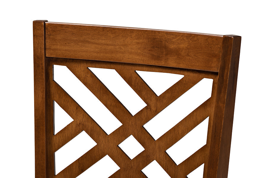 Redefine your dining space with the elegance and comfort of the Iden 5-piece dining set. Constructed from rubberwood in a warm walnut brown finish, this dining set includes one table and four chairs, each upholstered in a light polyester fabric that complements the warm wood finish. Padded with foam for the highest level of dining comfort, each chair features a stunning cut-out back for enhanced visual appeal. Whether used for chic dinner parties or casual family dinners, the Iden set is sure to elevate any dining experience. The Iden 5-piece dining set is made in Malaysia and requires assembly.
