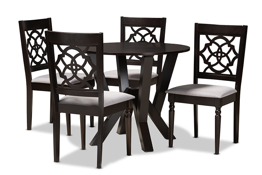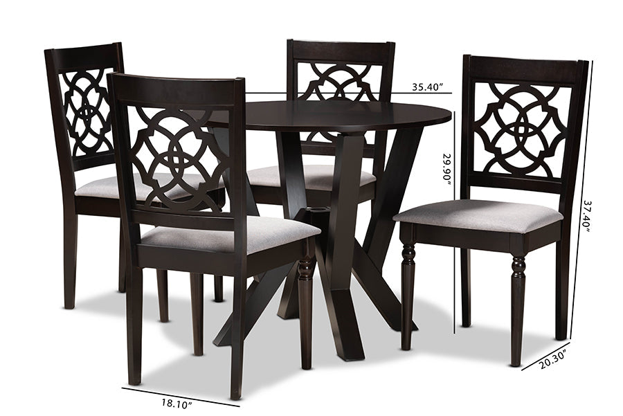 Louetta Gray Fabric Upholstered and Dark Brown 5-Piece Dining Set