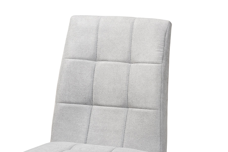 Arrange your dining room with the refreshing design of the Mitchell dining set. Made in Malaysia, the Mitchell includes six chairs and one table constructed from walnut brown finished wood. The seats are padded with soft foam and upholstered in smooth fabric for an exceptionally comfortable dining experience. Grid tufting adds a clean, contemporary look. Requiring assembly, the Mitchell features a broad, rectangular tabletop that provides ample elbow room for each member at the table. A charming blend of modern style and comfort, the Mitchell dining set is a terrific addition to any space.