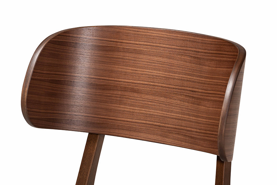 Coordinate your dining room with the smooth craftsmanship of the Marguerite dining set. Made in Malaysia, this dining set includes four chairs and one table constructed from wood showcasing a warm, walnut brown finish. Each chair features a curved backrest for solid back support, while a bent seat upholstered in fabric brings excellent comfort to every meal. Requiring assembly, the Marguerite includes a rectangular tabletop designed to comfortably seat four. A superb blend of comfort and expressive design, the Marguerite dining set is a fantastic addition to any dining room.