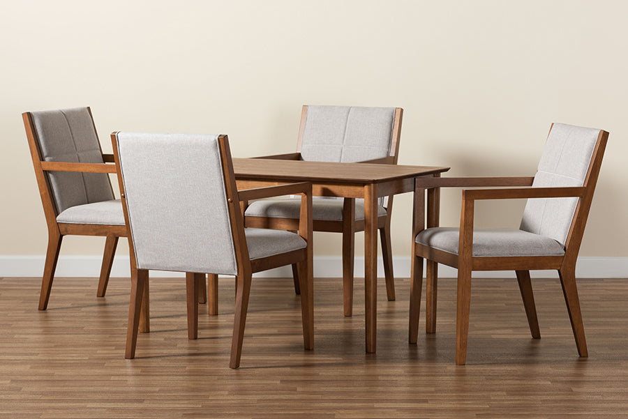 Miren Greyish Beige Fabric Upholstered and Walnut Brown 5-Piece Dining Set