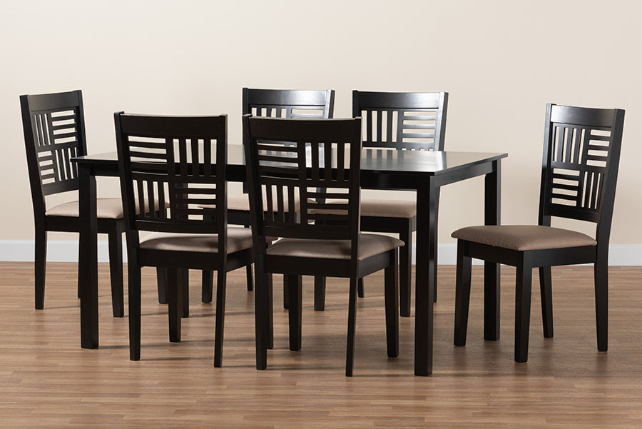 Marin Modern Beige Fabric and Dark Brown 7-Piece Dining Set