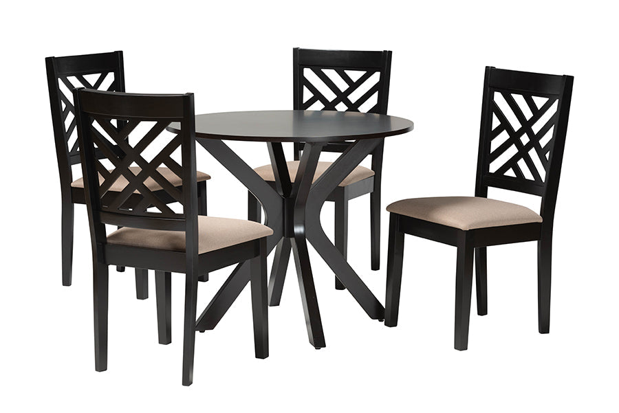 Redefine your dining space with the elegance and comfort of the Michio dining set. Made in Malaysia, this modern set includes four dining chairs and one table crafted form sturdy wood. Each chair is fitted with a plush foam-padded cushion upholstered in smooth fabric and features a unique cut-out design on its back. The Michio requires assembly and features a large, circular tabletop that allows ample elbow room for each member of the table. Ideal for both casual and formal occasions, the Michio dining set is an easy upgrade for any layout.