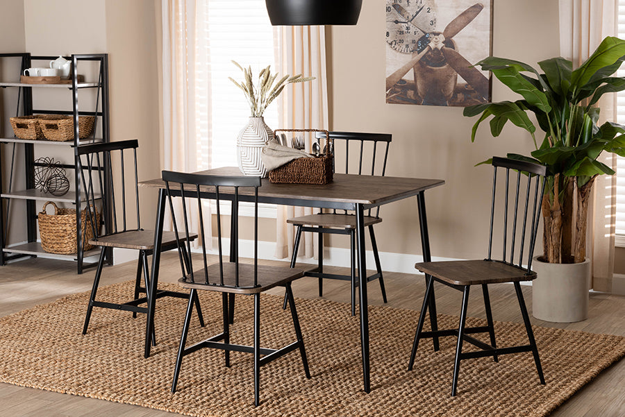 Louisa Industrial Dark Brown Wood and Metal Dining Set