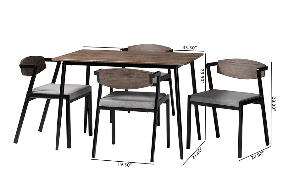 Enchant the mood of every occasion with the rustic refinement of the Iliana dining set. Wonderfully crafted in China, this industrial inspired set includes four chairs and one table crafted from sturdy wood and metal. Each seat is upholstered in cozy fabric and fitted with convenient armrests to encourage casual leisure. The Iliana requires assembly and features a rectangular tabletop to accommodate each member of the table. Lending a quality of robust artistry, the Iliana dining set elevates any space.