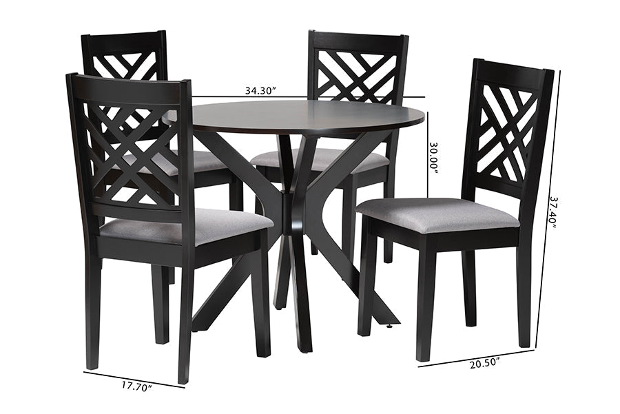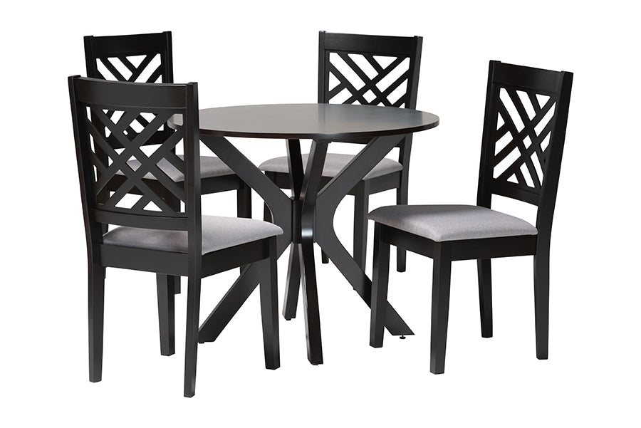Redefine your dining space with the elegance and comfort of the Michio dining set. Made in Malaysia, this modern set includes four dining chairs and one table crafted form sturdy wood. Each chair is fitted with a plush foam-padded cushion upholstered in smooth fabric and features a unique cut-out design on its back. The Michio requires assembly and features a large, circular tabletop that allows ample elbow room for each member of the table. Ideal for both casual and formal occasions, the Michio dining set is an easy upgrade for any layout.