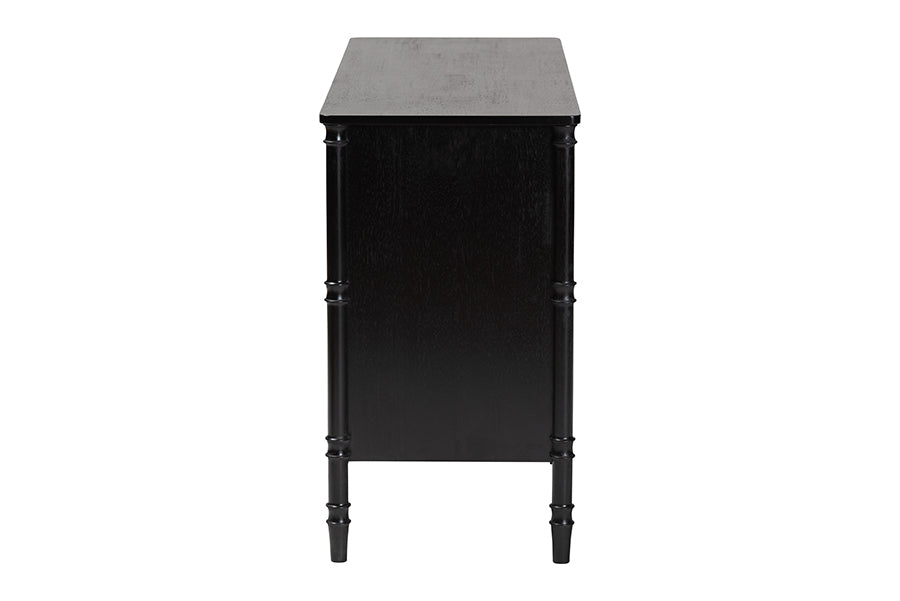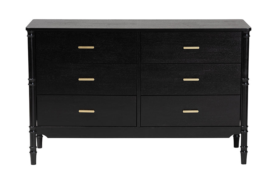 The beautiful Matilde dresser adds an element timeless grace to any setting. Made in Malaysia, this mid-century inspired piece is crafted from sturdy wood. Six interlocking drawers offer ample space to organize clothes and linens while reserving the tabletop as a fantastic display area. The Matilde requires assembly and is affixed with metal handles that that accentuate the elegant nature of the piece. Turned embellishments on each leg reminiscent of bamboo stalks accentuate the intricate detail, making the Matilde dresser an outstanding bedroom addition.