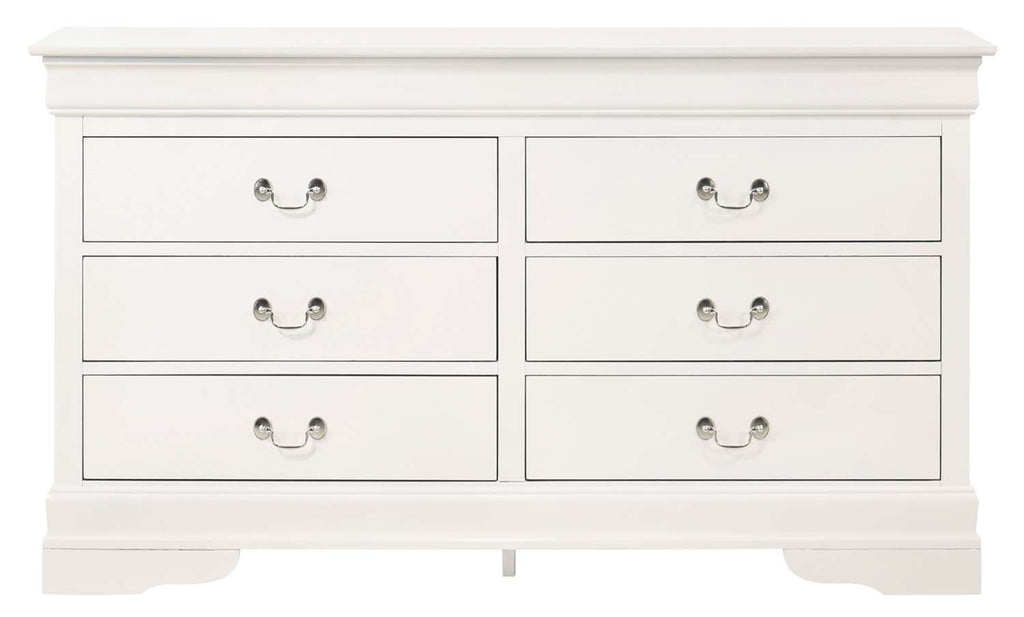 LouisPhillipe 6-Drawers Dresser w/Carved Base, White