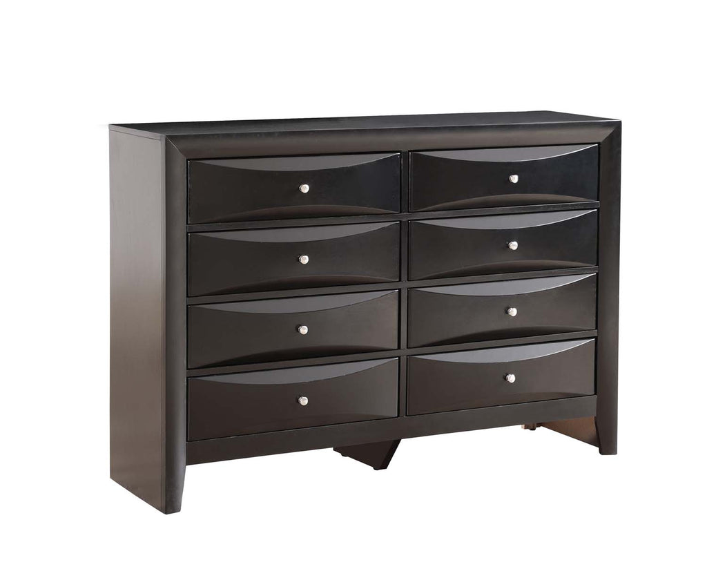 Assembled Bedroom Dresser is Finished in Real Wood Veneers over Manufactured and Solid Wood. Drawers Move on Center Supported Metal Guides and Are Dovetailed Front and Back. Corner Blocks are utilized to Support Drawer Bottoms. Choose from a Variety of Colors. Additonal Case Pieces are Available as well as Matching Beds