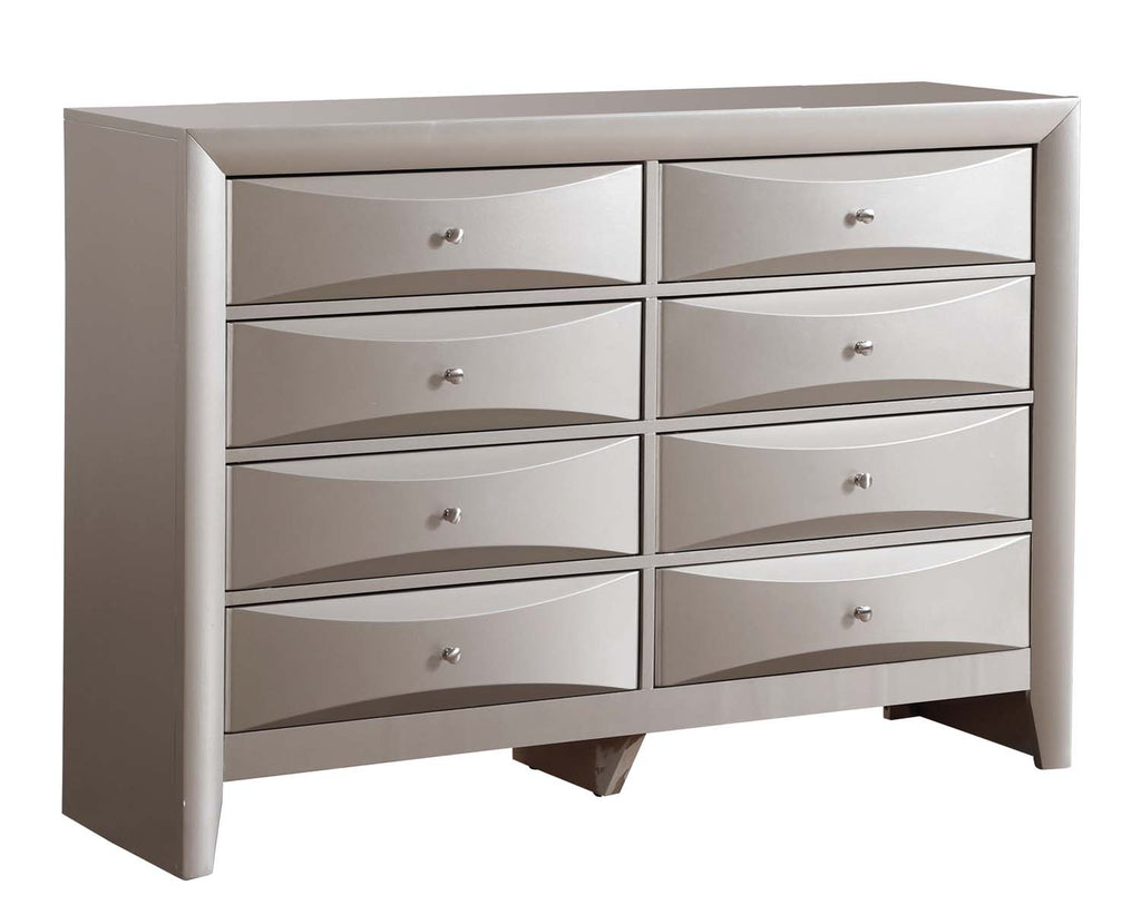 Assembled Bedroom Dresser is Finished in Real Wood Veneers over Manufactured and Solid Wood. Drawers Move on Center Supported Metal Guides and Are Dovetailed Front and Back. Corner Blocks are utilized to Support Drawer Bottoms. Choose from a Variety of Colors. Additonal Case Pieces are Available as well as Matching Beds