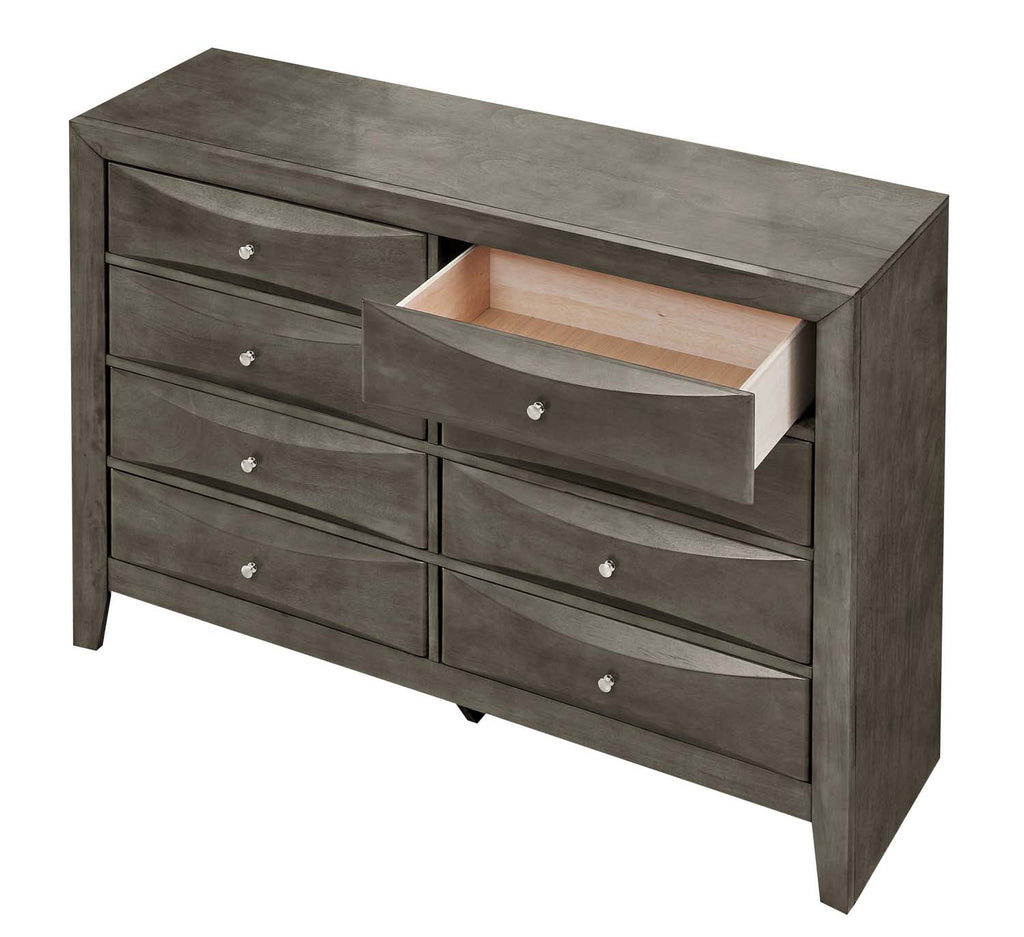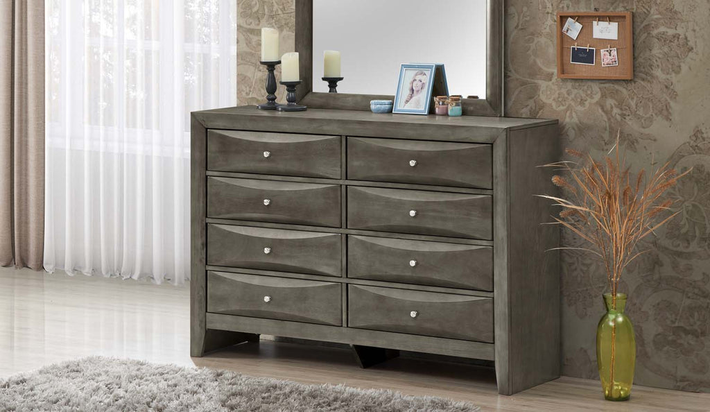 Assembled Bedroom Dresser is Finished in Real Wood Veneers over Manufactured and Solid Wood. Drawers Move on Center Supported Metal Guides and Are Dovetailed Front and Back. Corner Blocks are utilized to Support Drawer Bottoms. Choose from a Variety of Colors. Additonal Case Pieces are Available as well as Matching Beds