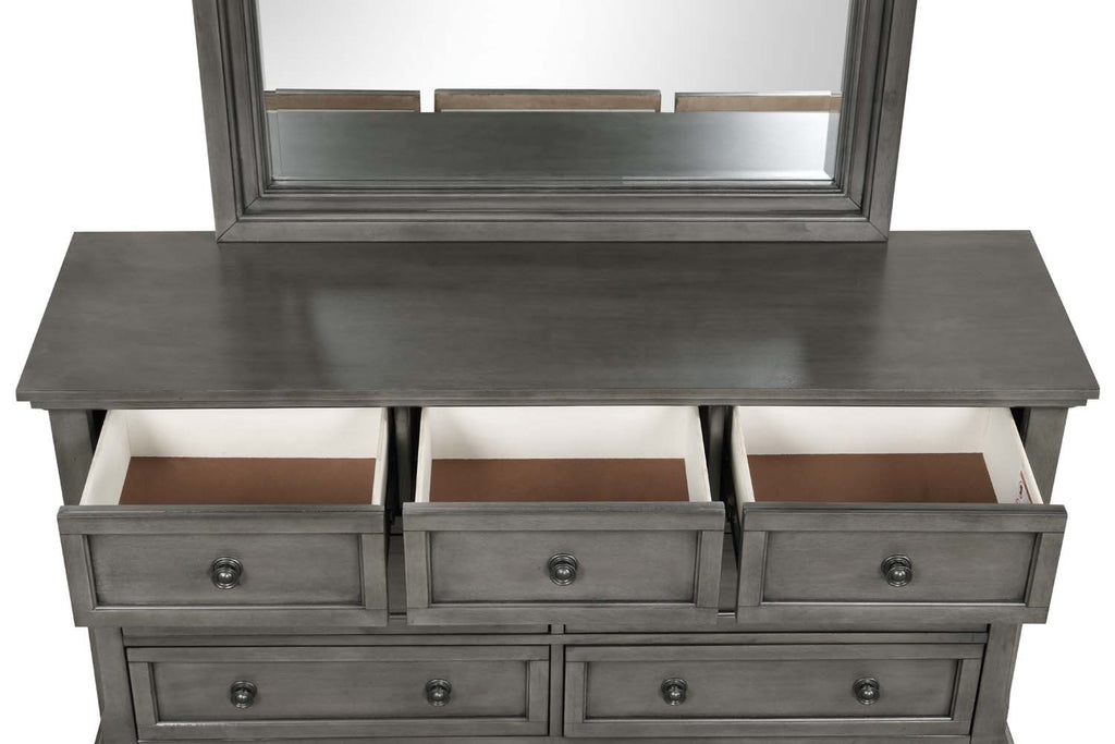 Assembled Bedroom Dresser is Finished in Real Wood Veneers over Manufactured and Solid Wood. Drawers Move on Ball Bearing Full Extension Drawer Glides and Are Dovetailed Front and Back. Corner Blocks are utilized to Support Drawer Bottoms. Choose from a Variety of Colors. Additonal Case Pieces are Available as well as Matching Beds