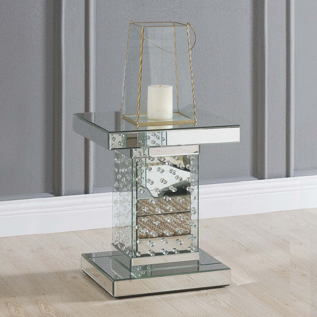 - Column Base: Beveled Mirrored Finish with Clear Glass and Faux Crystal Inlay