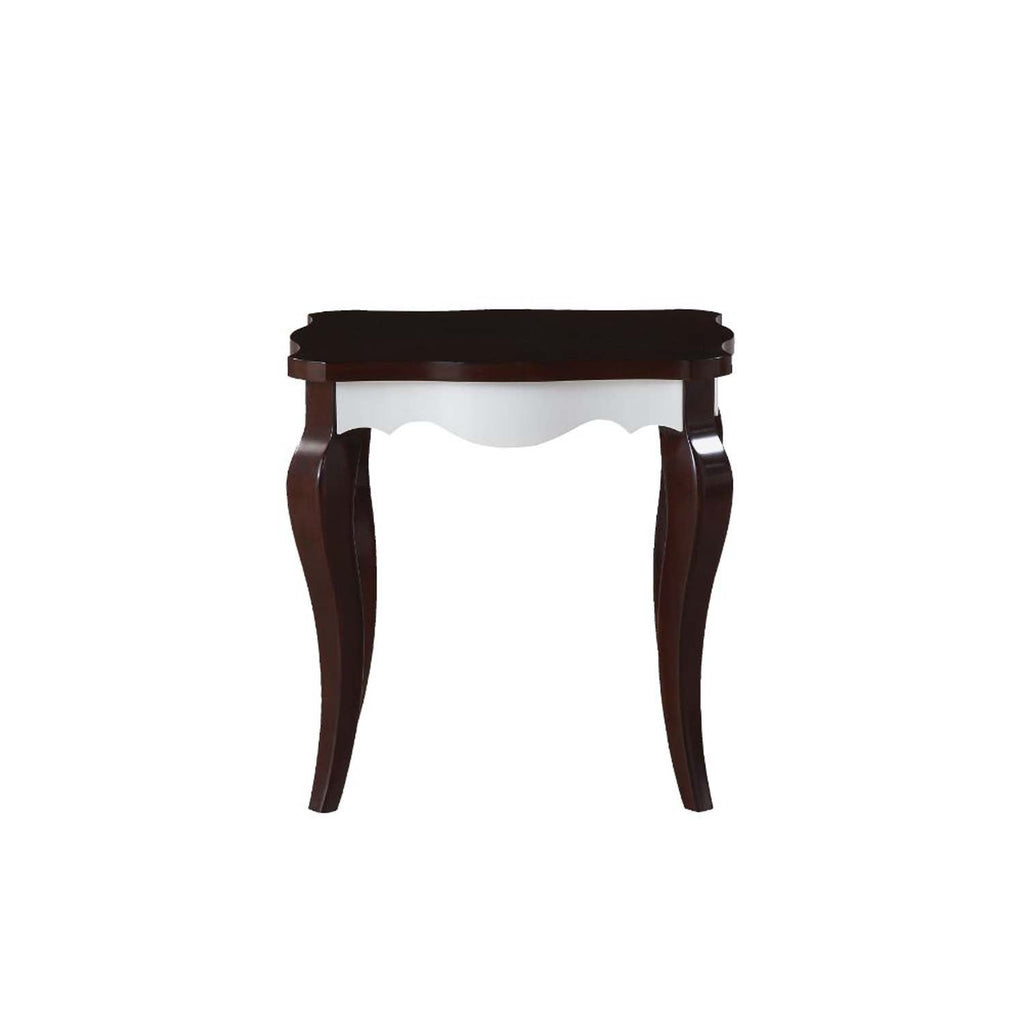 The Mathias end table looks great in any living space. The contrast between the walnut tabletop and legs against the white apron makes this table stand out, giving it a modern twist. The cabriole legs and scalloped apron are a subtle ode to traditional design. Pair it with the matching coffee and sofa tables to complete the look (Sold Separately).