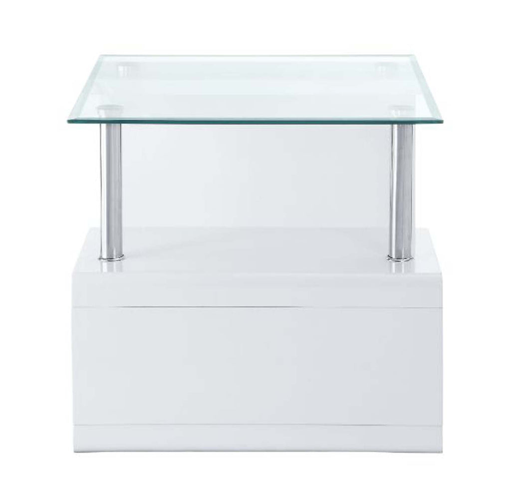 Color: Clear Glass Top & White High Gloss Finish