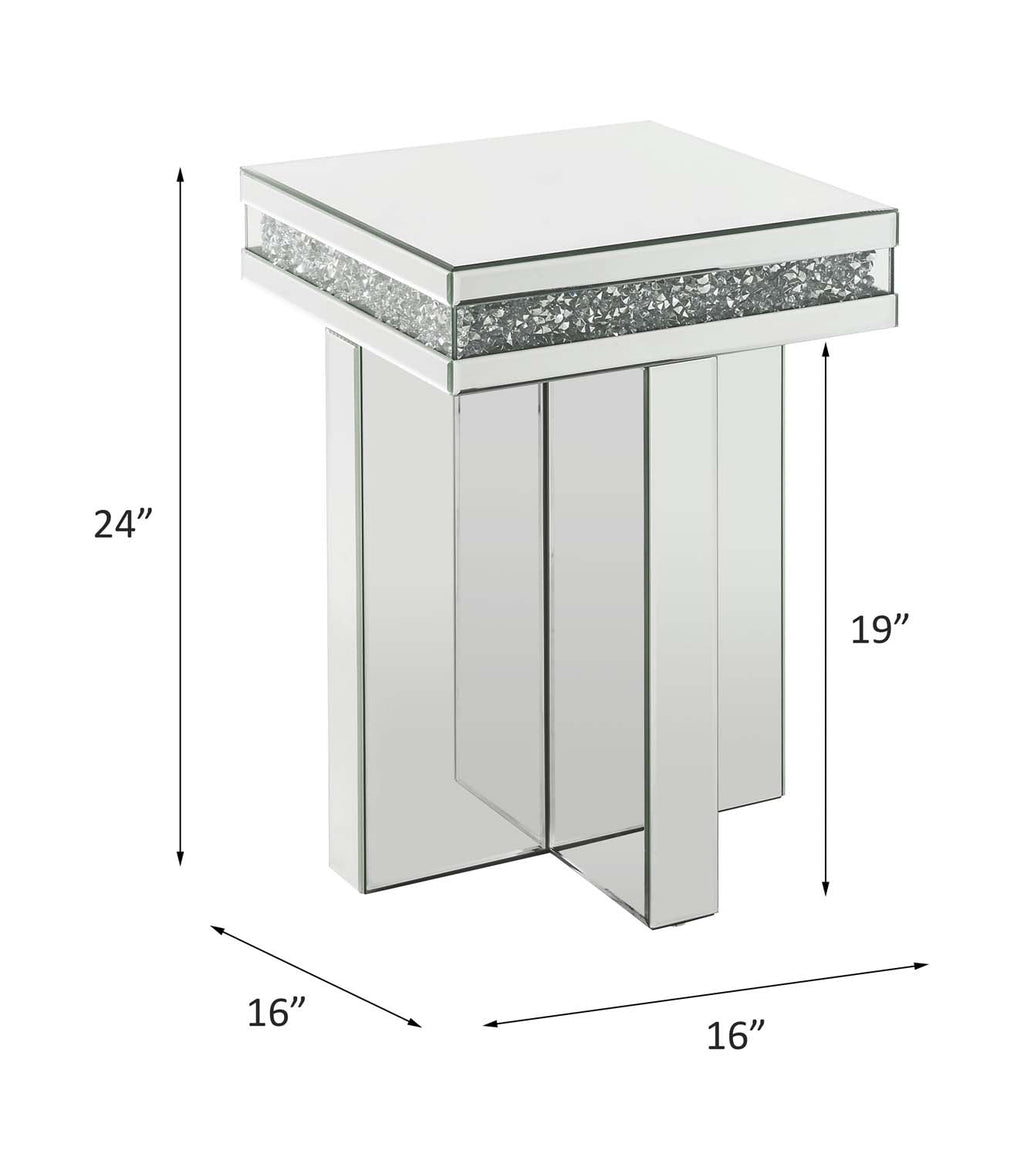 Want to make a bold statement, then these Noralie End table is the perfect solution. With a one of a kind cross base and dazzling diamond borders, this piece is sure to stand out. Featuring a sturdy 4mm table top that can be used for display or function. The gleaming complement will reflect the perfect amount of light into any dark space. Let this innovative furniture add new style to your home.