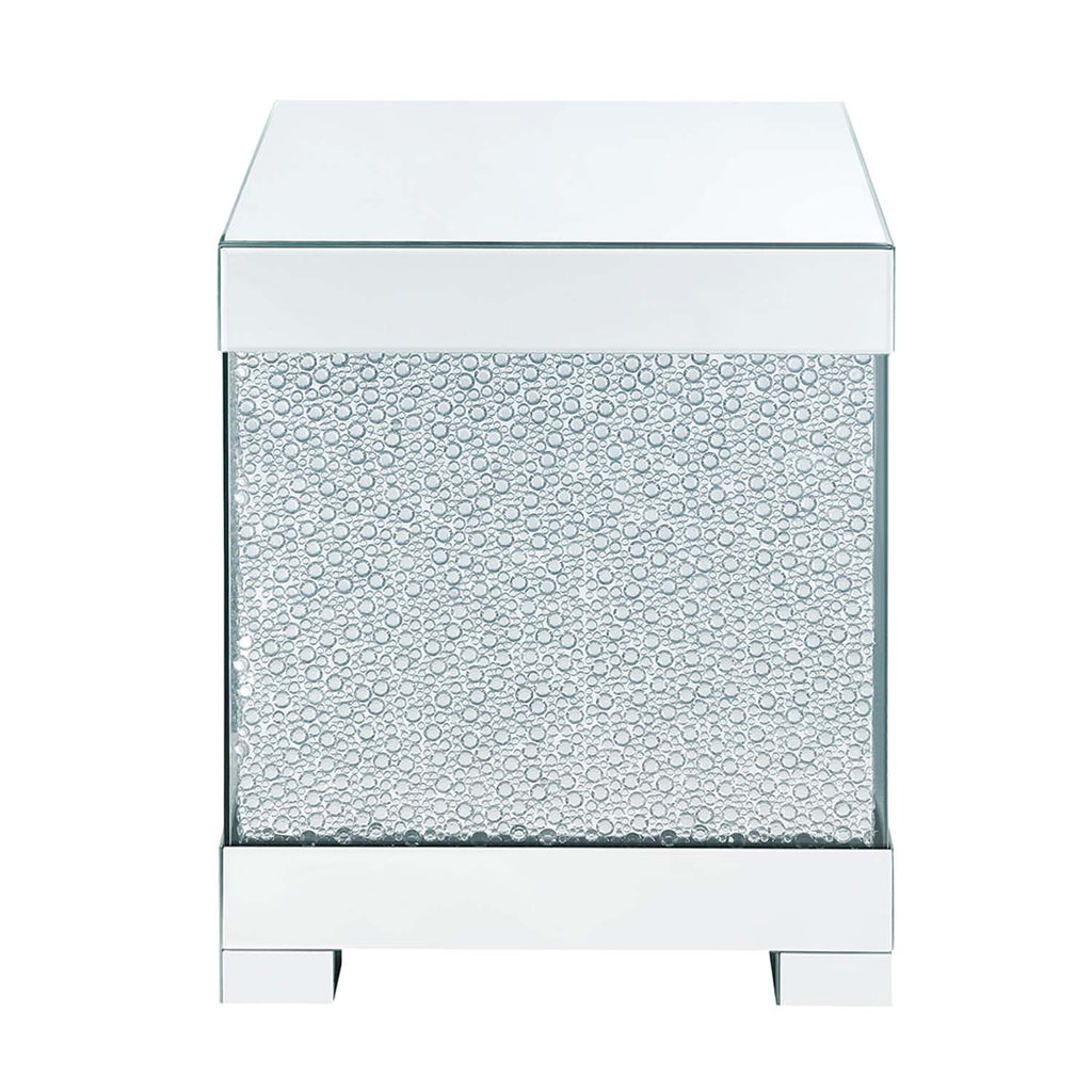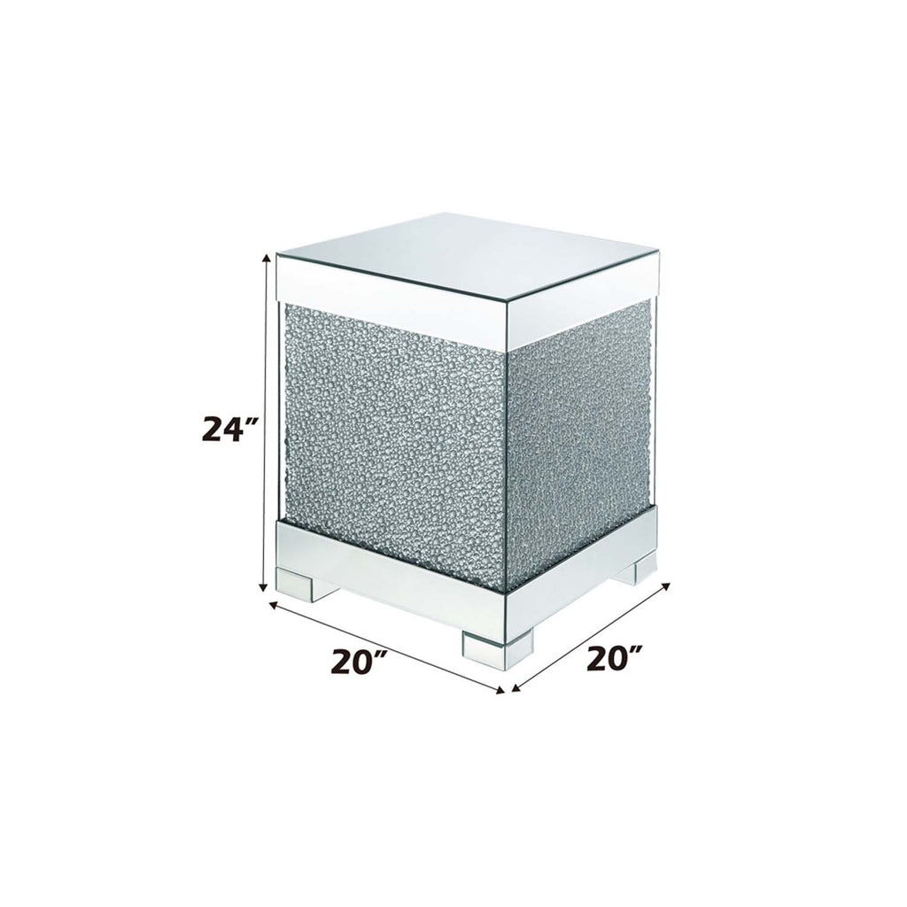 - Features: Mirrored Top, Base w/Faux Crystals & Clear Glass