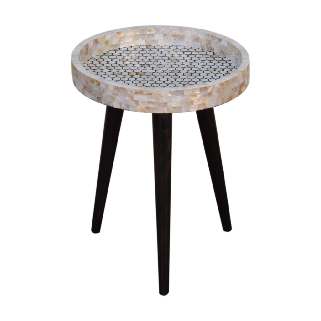 Whether it sits in your living room, bedroom or hallway you will sure find space for this compact piece in your home. Constructed from 100% solid mango wood it features ash black Nordic style legs and has a patterned honeycomb design base with a mosaic circumference.