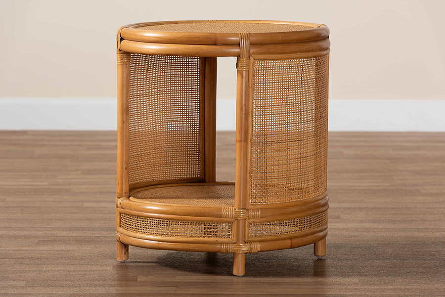 Rustic, tropical flair arrives in efficient design with the stunning Ornella end table. Made in Indonesia, this bohemian piece is handcrafted from natural rattan. Its round silhouette features an open shelf to organize and display common essentials while reserving the tabletop for daily use. The Ornella will arrive fully assembled and is adorned with woven rattan embellishments for a light, airy display. Characterized by carefree convenience, the Ornella end table elevates any arrangement.