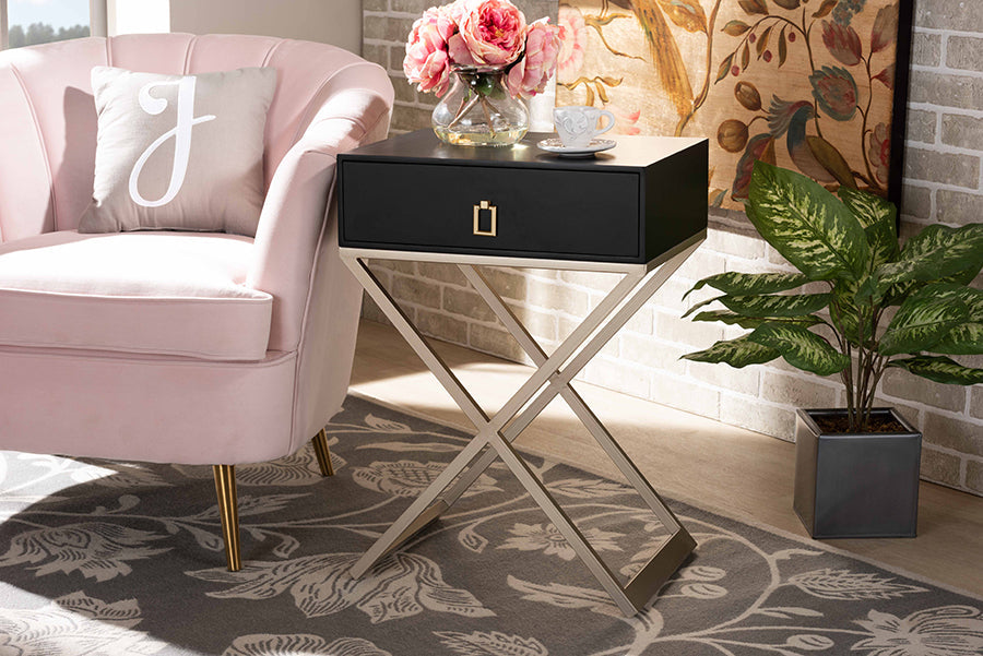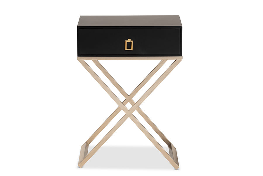 Marelli Black and Powder Coated Brass Effect Metal 1-Drawer End Table